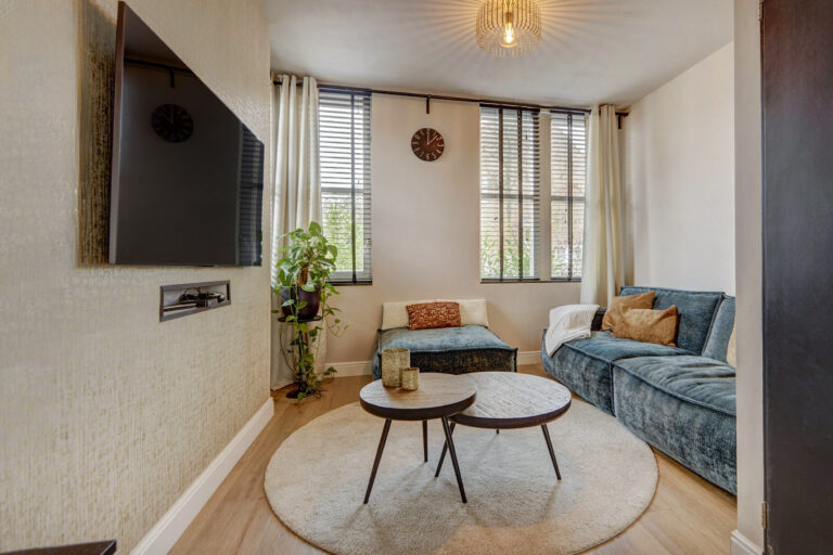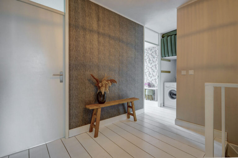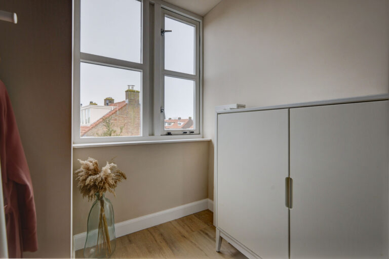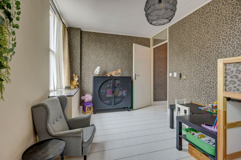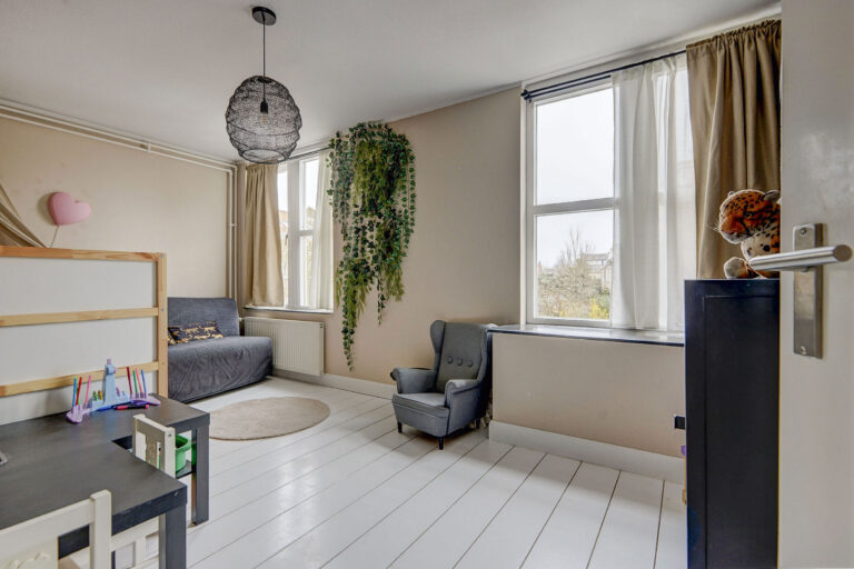 Op de eerste verdieping valt direct het vele licht en de ruimtelijke indeling op. Je vindt hier een zeer royale slaapkamer over de gehele breedte van de woning aan de voorzijde. De slaapkamer aan de achterzijde is eveneens heerlijk ruim en je hebt hier een 3e slaap/werkkamer die momenteel in gebruik is als kledingkamer. Op de overloop vind je een praktische ruimte met wasmachine-aansluiting en CV-installatie, en een moderne badkamer met douche, wastafel en 2e toilet.