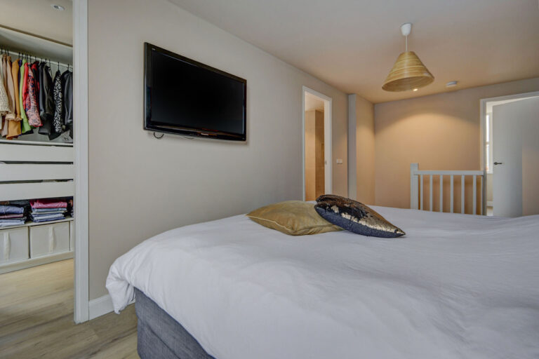 De volwaardige tweede verdieping uit 2023 is werkelijk een plaatje. Je hebt hier de beschikking over nog eens een ruime slaapkamer met een doorloop naar je een inloopkast én een 2e badkamer uit 2025. Deze is zeer riant en heeft naast een ruime douche, toilet en wastafel ook nog eens een whirlpool bad. Daarnaast is er nog een 5e slaapkamer op deze verdieping die momenteel dient als praktische bergruimte.