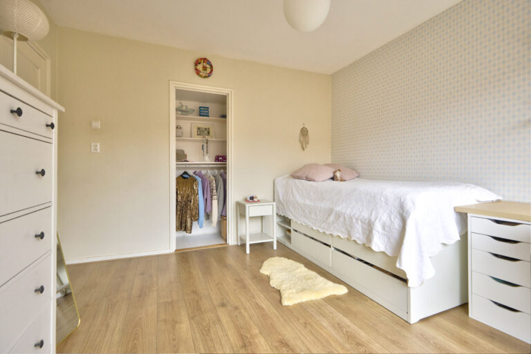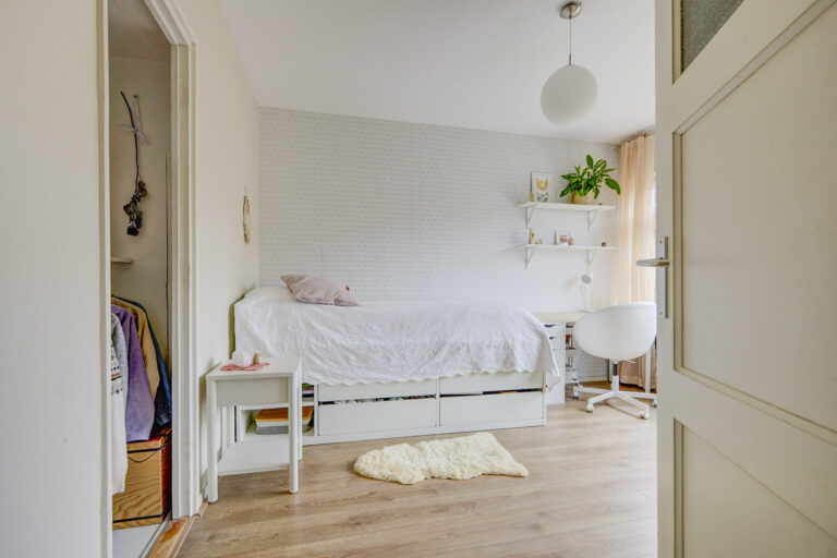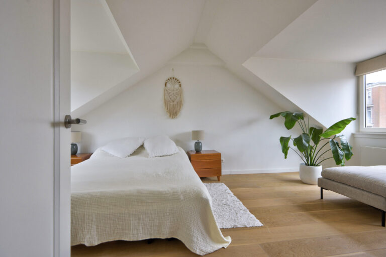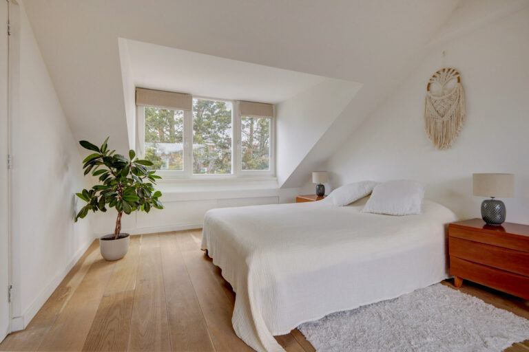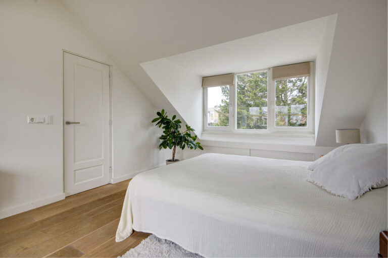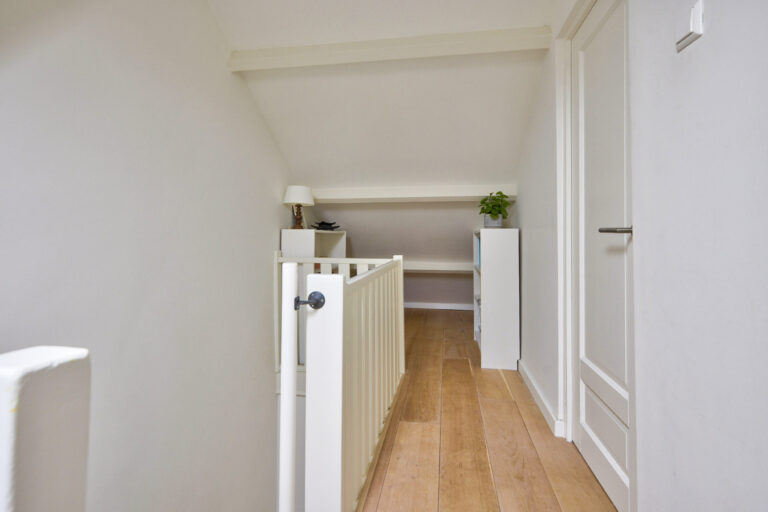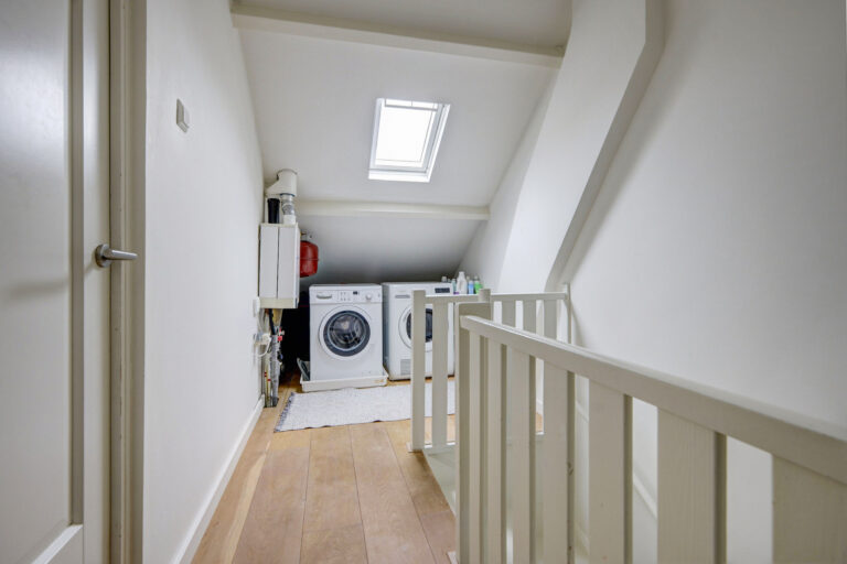 De tweede verdieping heeft een ruime overloop met aansluitingen voor de wasmachine en de droger. Ook de Intergas cv-ketel (2012) bevindt zich hier. Verder tref je hier de master bedroom; een zeer riante en lichte slaapkamer met zowel aan de voor- als achterzijde een dakkapel
