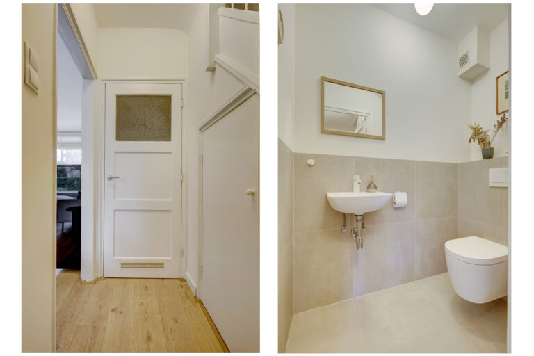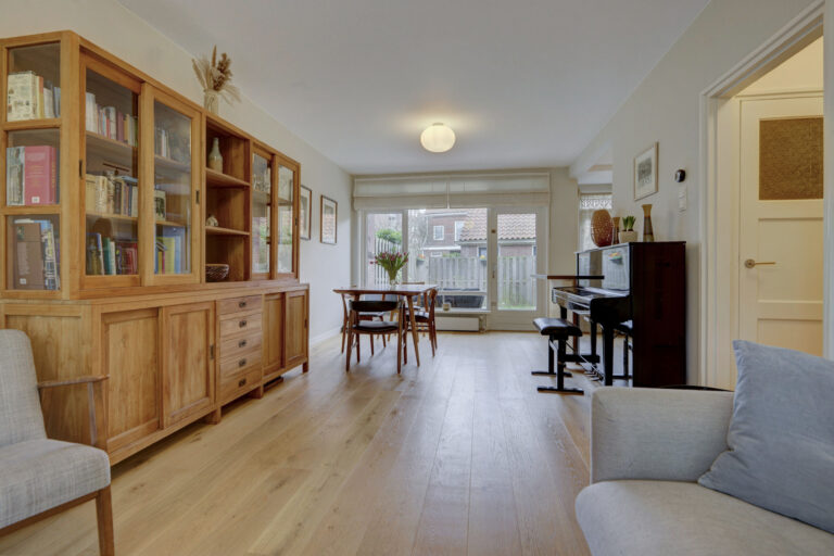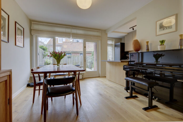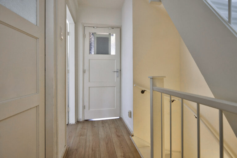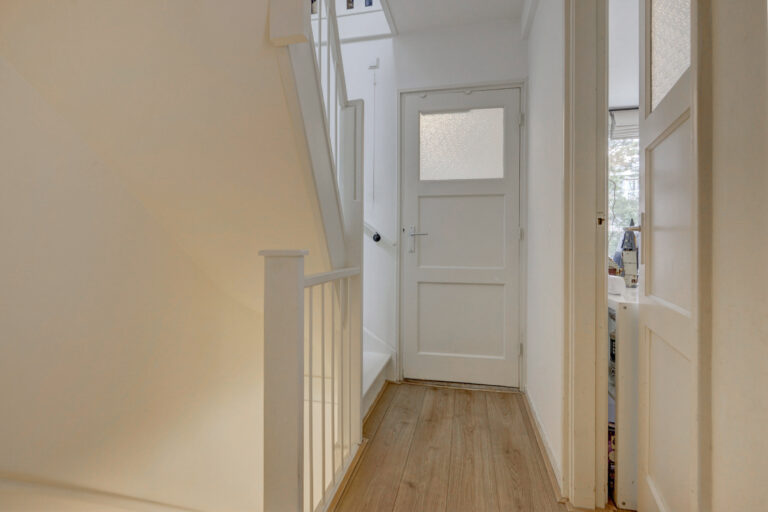 Via de voortuin betreed je de woning in de ruime hal en gang met modern toilet in een lichte kleurstelling. De woonkamer is voorzien van houten vloer en glad gestucte wanden en plafonds. Het is hier heerlijk licht en je hebt uitzicht op een groenpartij. Aan de achterzijde vind je de recent geplaatste keuken uit 2022. Deze is van alle gemakken voorzien en heeft hoogwaardige inbouwapparatuur zoals een oven, inductie kookplaat en vaatwasser. Vanuit de woonkamer bereik je de zonnige achtertuin op het zuidoosten. Net buiten de eigen tuin bevindt zich een handige schuur voor opslag of het stallen van fietsen. Deze schuur is via de steeg achter de woning eenvoudig te bereiken.