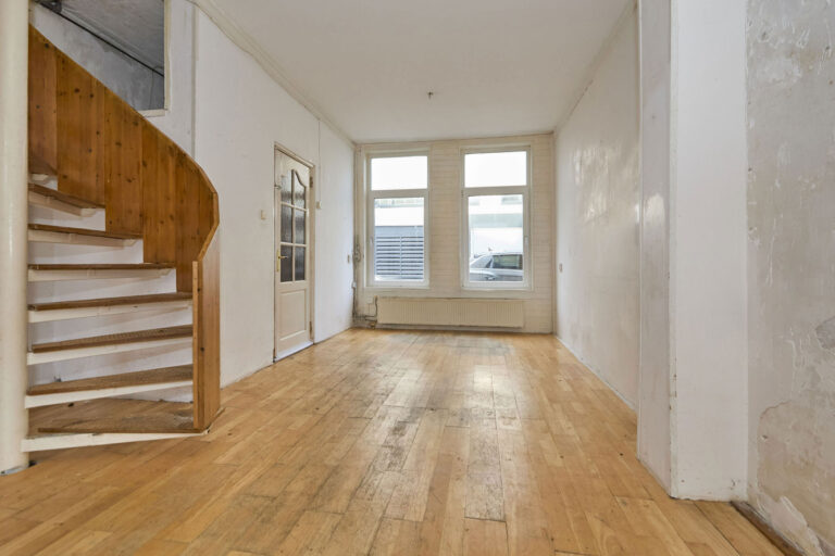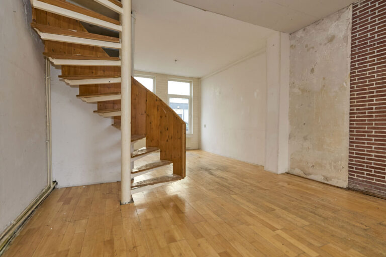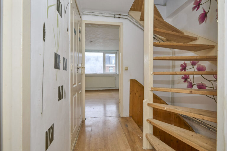 Deze woning biedt verrassend veel ruimte. De woonkamer met hoge plafonds geeft toegang tot de eenvoudige keuken en bijkeuken. Een ideale plek om een moderne en royale leefkeuken te creëren. De 1e verdieping telt 3 slaapkamers waarvan een riante kamer aan de achterzijde en 2 prima slaapkamers aan de voorzijde. Vanaf de overloop is de inpandige badkamer bereikbaar met een toilet en aansluitingen voor de wastafel en douche. De 2e etage telt nog eens 2 riante slaapkamers.