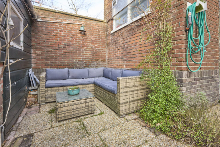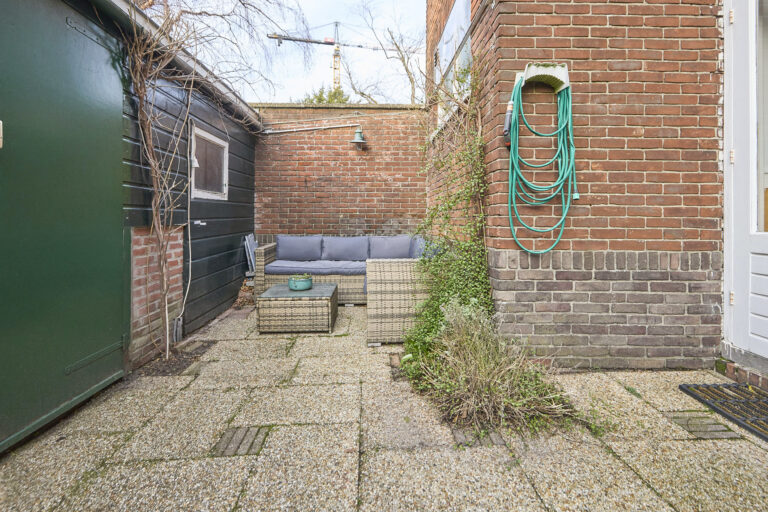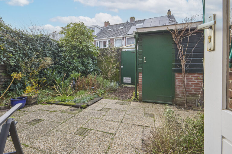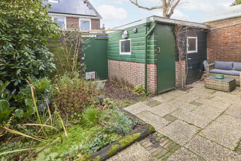 Aan de achterzijde bevindt zich een absolute bonus: een zonnige achtertuin op het westen. Hier geniet je tot in de avond van de zon. De tuin beschikt over een achterom en een ruime berging, ideaal voor fietsen en extra opslag.